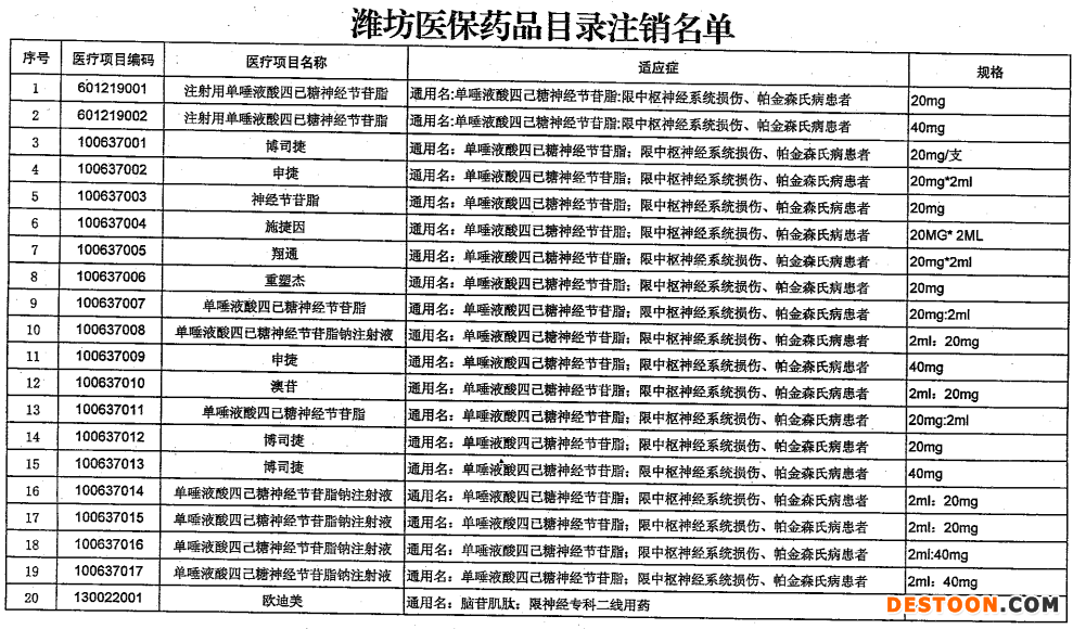 通知顯示,自7月1日起將腦苷肌肽等9種通用名藥品調(diào)出醫(yī)保目錄。此外,濰坊市于7月1日上午8:00起已將濰坊市醫(yī)保目錄中對應(yīng)的的117個藥品注銷。