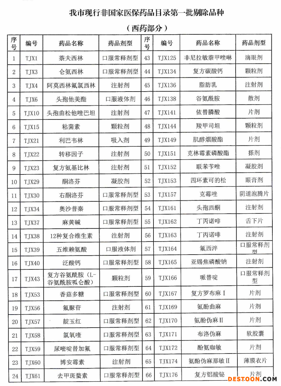 湖南省調(diào)出醫(yī)保目錄的168個品種名單: