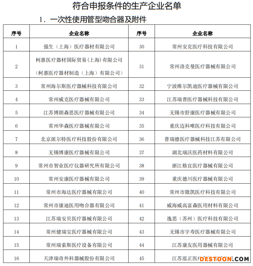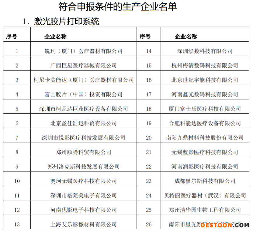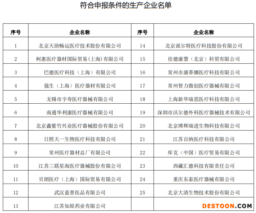 二、符合申報條件的生產(chǎn)企業(yè)名單