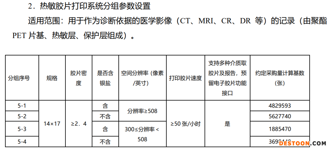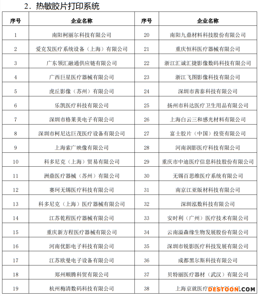 對于激光膠片類耗材,1-2家企業(yè)中選1家,3-4家中選2家,5-7家中選3家,8-9家中選4家,超過(包含)10家中選5家。對于熱敏膠片類耗材,1-7家中選1家,超過(包含)8家中選2家。
