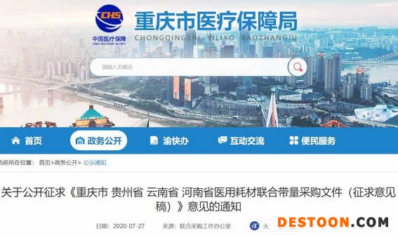 7月27日,重慶市醫(yī)保局發(fā)布《重慶市貴州省 云南省 河南省醫(yī)用耗材聯(lián)合帶量采購文件(征求意見稿)》(下稱《征求意見稿》),對吻合器、補片、膠片3類醫(yī)用耗材開展帶量采購,同時發(fā)布上述3類耗材的帶量采購文件。