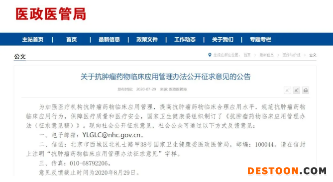 醫(yī)藥網(wǎng)7月30日訊 7月29日,國家衛(wèi)健委醫(yī)政醫(yī)管局發(fā)布《抗腫瘤藥物臨床應(yīng)用管理辦法(征求意見稿)》(簡(jiǎn)稱“征求意見稿”),旨在進(jìn)一步加強(qiáng)醫(yī)療機(jī)構(gòu)抗腫瘤藥物臨床應(yīng)用管理,提高抗腫瘤藥物臨床合理應(yīng)用水平,規(guī)范抗腫瘤藥物臨床應(yīng)用行為,保障醫(yī)療質(zhì)量和醫(yī)療安全。