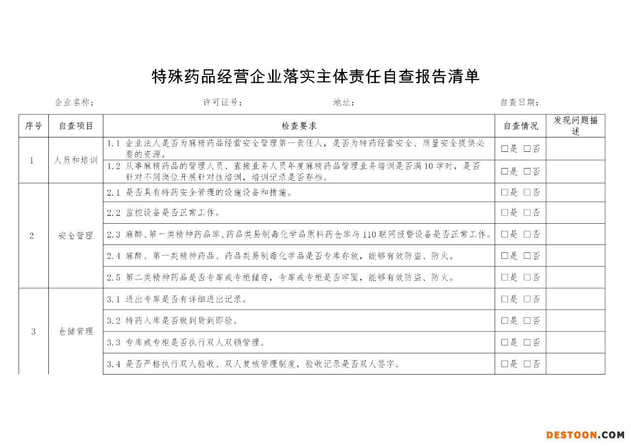 附:特殊藥品經(jīng)營(yíng)企業(yè)落實(shí)主體責(zé)任自查報(bào)告清單