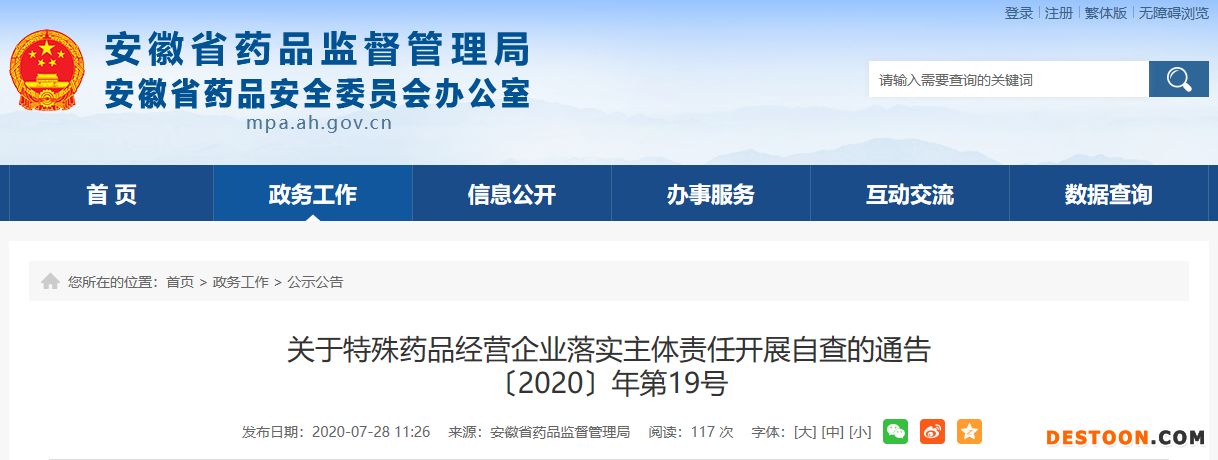 7月28日,安徽省藥監(jiān)局發(fā)布了《關(guān)于特殊藥品經(jīng)營(yíng)企業(yè)落實(shí)主體責(zé)任開展自查的通告〔2020〕年第19號(hào)》(以下簡(jiǎn)稱《自查通告》)。