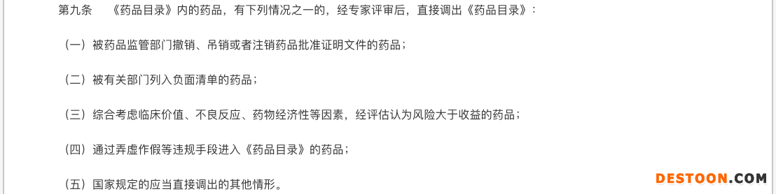 《辦法》第十條規(guī)定,符合以下情況的,可以調(diào)出醫(yī)保目錄: