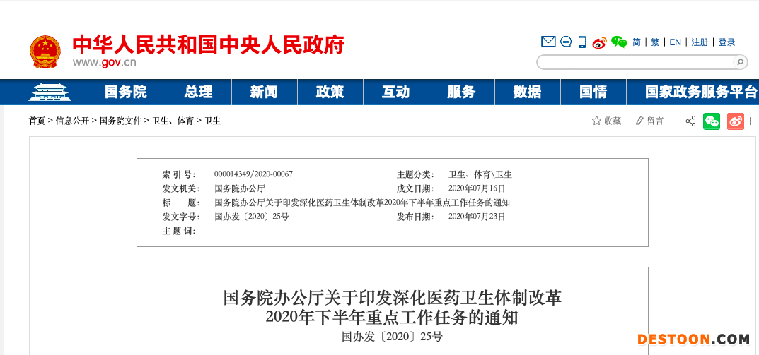 近日,國務(wù)院辦公廳發(fā)布《關(guān)于印發(fā)深化醫(yī)藥衛(wèi)生體制改革2020年下半年重點工作任務(wù)的通知》。