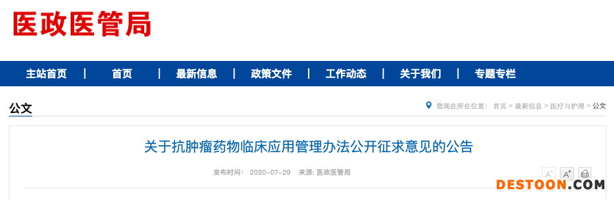 7月29日,國家衛(wèi)健委發(fā)布《關(guān)于抗腫瘤藥物臨床應(yīng)用管理辦法公開征求意見的公告》(以下簡稱《辦法》),對抗腫瘤藥物臨床使用提出明確要求。