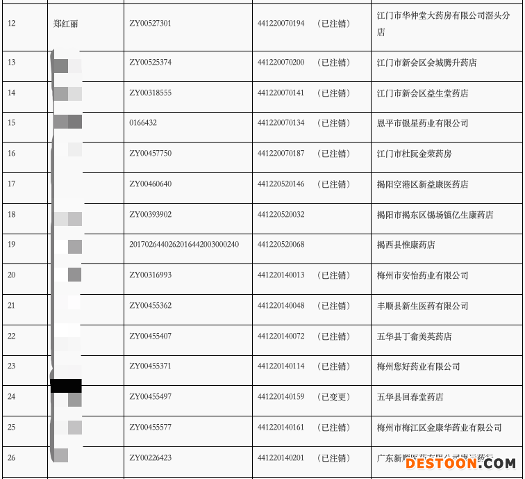 通告內(nèi)容顯示,有44位執(zhí)業(yè)藥師存在掛證行為,其中有34位執(zhí)業(yè)藥師的注冊證已經(jīng)注銷,具體情況如下: