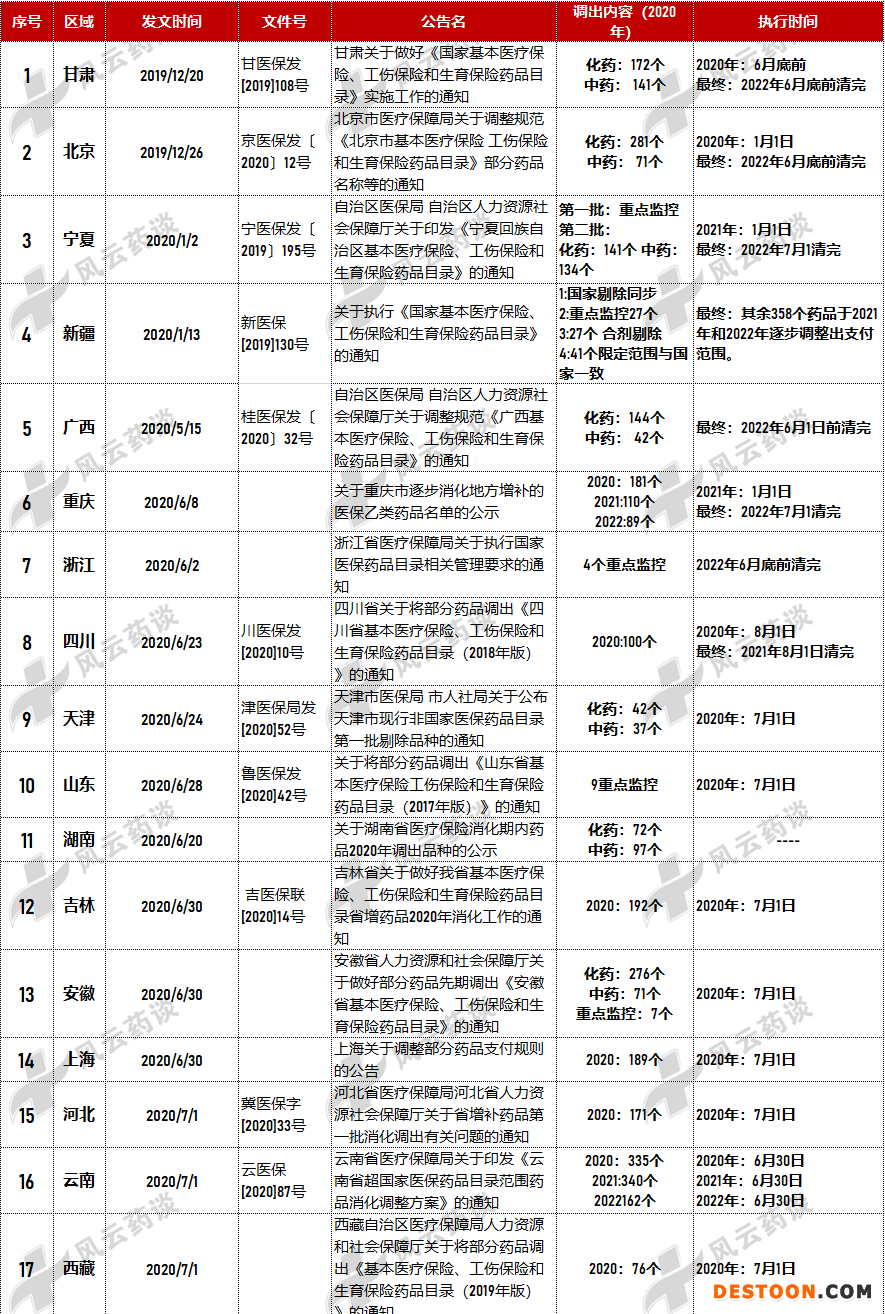 據(jù)風(fēng)云藥談統(tǒng)計,之前已有19個省份進行了省增補品種的調(diào)出,除了下述17個省外,還有河南省和湖南省。