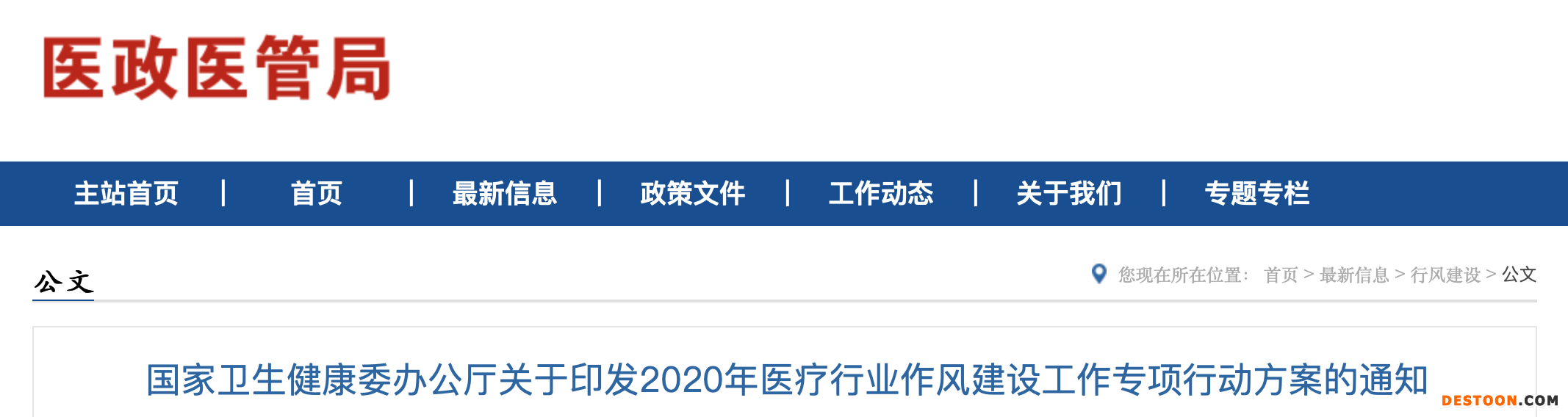 日前,國家衛(wèi)健委發(fā)布了《2020年醫(yī)療行業(yè)作風(fēng)建設(shè)工作專項行動方案》,這次方案的重點就是規(guī)范醫(yī)療機構(gòu)及其從業(yè)人員行為,印發(fā)給各省、自治區(qū)、直轄市及新疆生產(chǎn)建設(shè)兵團衛(wèi)生健康委,開始組織實施。