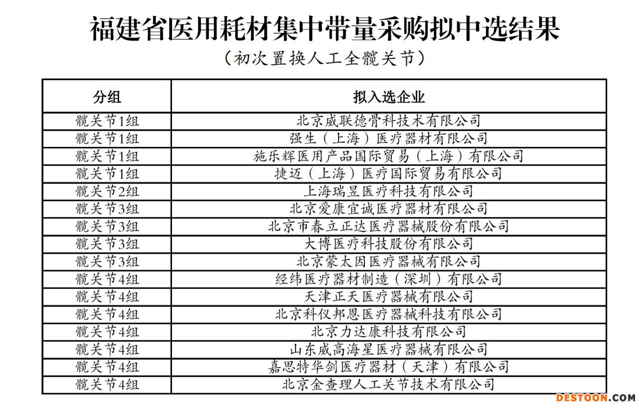 據(jù)了解,7月10日福建省醫(yī)保局發(fā)布耗材集中帶量采購的結(jié)果通知,涉及人工關(guān)節(jié)(包括人工全髖關(guān)節(jié)、人工膝關(guān)節(jié))、留置針、超聲刀、鎮(zhèn)痛泵等4類耗材。