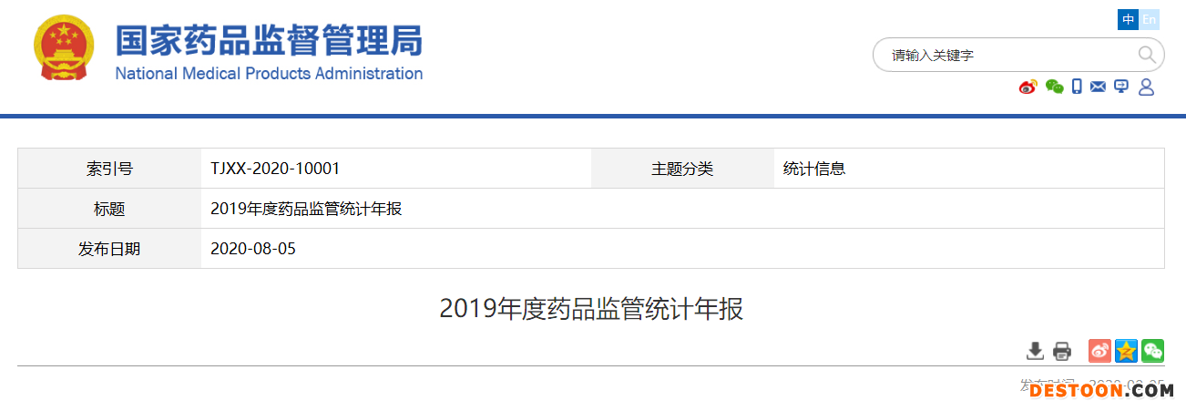 8月5日,國家藥監(jiān)局公布了《2019年度藥品監(jiān)管統(tǒng)計年報》(以下簡稱《年報》)。