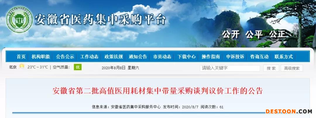 8月7日,安徽省醫(yī)藥集中采購(gòu)平臺(tái)發(fā)布《安徽省第二批高值醫(yī)用耗材集中帶量采購(gòu)談判議價(jià)工作的公告》(下稱《公告》)。