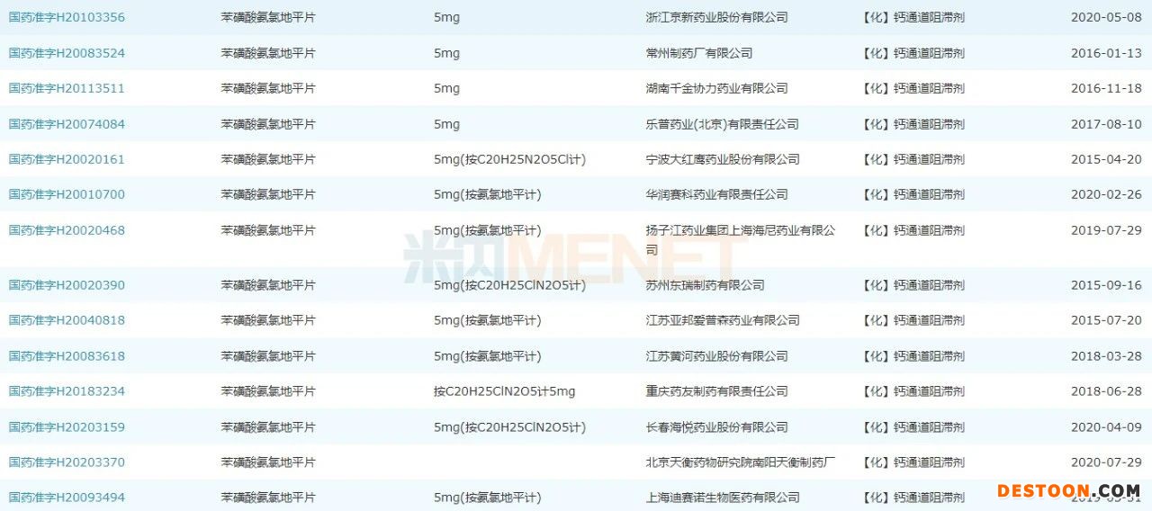 截至目前,苯磺酸氨氯地平片共有34家藥企通過一致性評價,超90%是以補充申請獲批。此外,苯磺酸氨氯地平片正在審評的一致性評價補充申請有江蘇康緣藥業(yè)、沈陽圣元藥業(yè)等6家企業(yè),涉及7個受理號;以仿制4類申報上市在審評審批中的有廣東東陽光藥業(yè)、陜西步長高新制藥、成都恒瑞制藥等6家企業(yè),涉及8個受理號。
