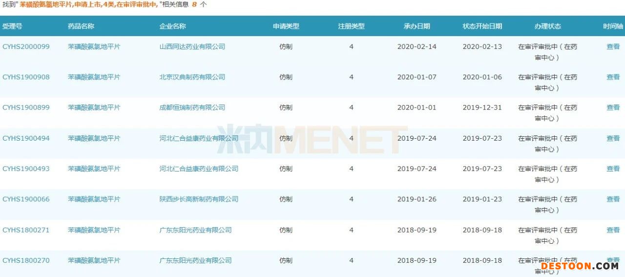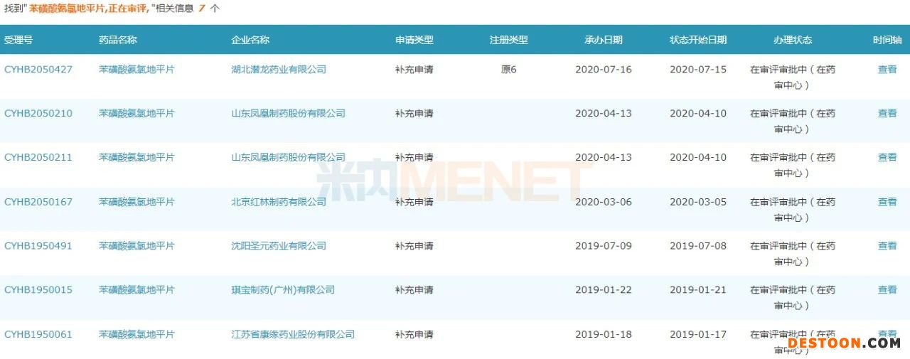 8月7日,CDE官網顯示,西安葛藍新通制藥的苯磺酸氨氯地平片4類仿制上市申請獲得受理。米內網數據顯示,在中國公立醫(yī)療機構終端氨氯地平片劑近兩年銷售規(guī)模均超60億元。TOP20品牌格局中,輝瑞位居首位,華潤賽科藥業(yè)排第二。截至目前,苯磺酸氨氯地平片共有34家藥企通過一致性評價,超90%是以補充申請獲批。