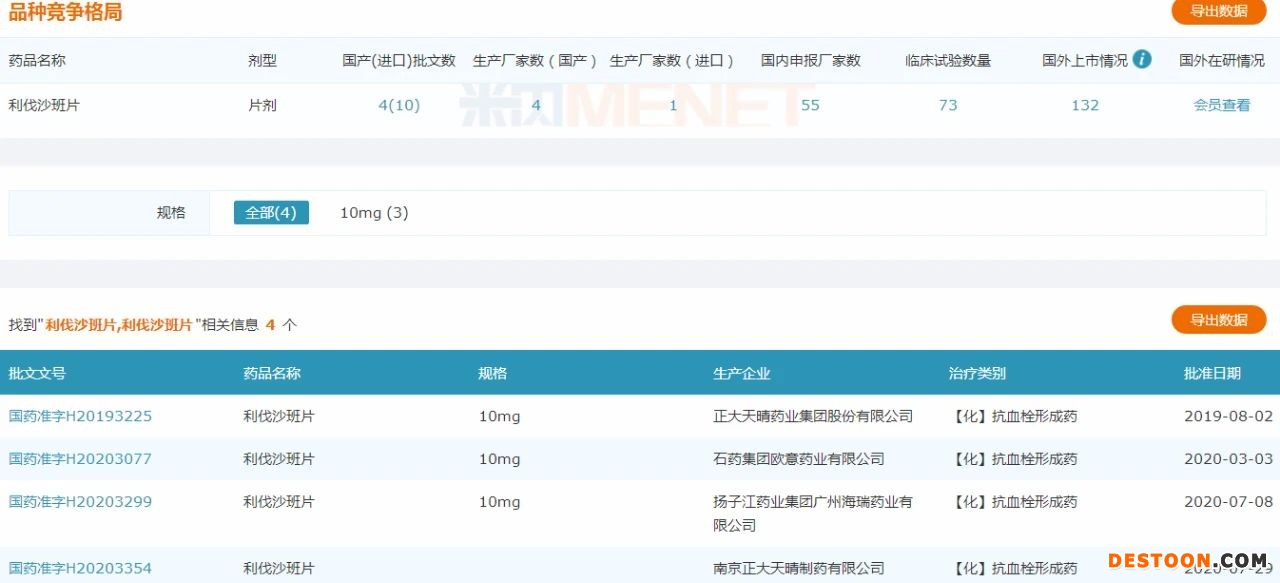 8月12日訊 日前,CDE官網(wǎng)顯示,瑞陽制藥、國藥集團致君(深圳)坪山制藥的利伐沙班片以仿制4類提交上市申請獲得受理。米內(nèi)網(wǎng)數(shù)據(jù)顯示,近年利伐沙班片在中國公立醫(yī)療機構(gòu)終端銷售額快速增長,2019年突破超過25億元,同比增長41.52%。