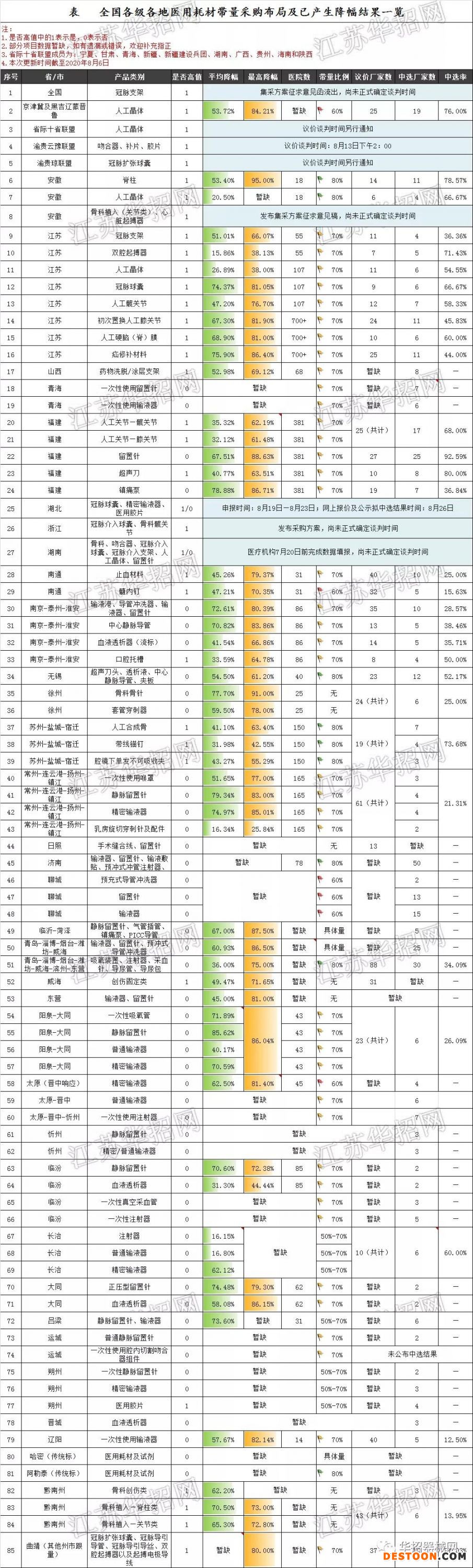 下附:全國各級(jí)各地醫(yī)用耗材帶量采購布局及已產(chǎn)生降幅結(jié)果一覽