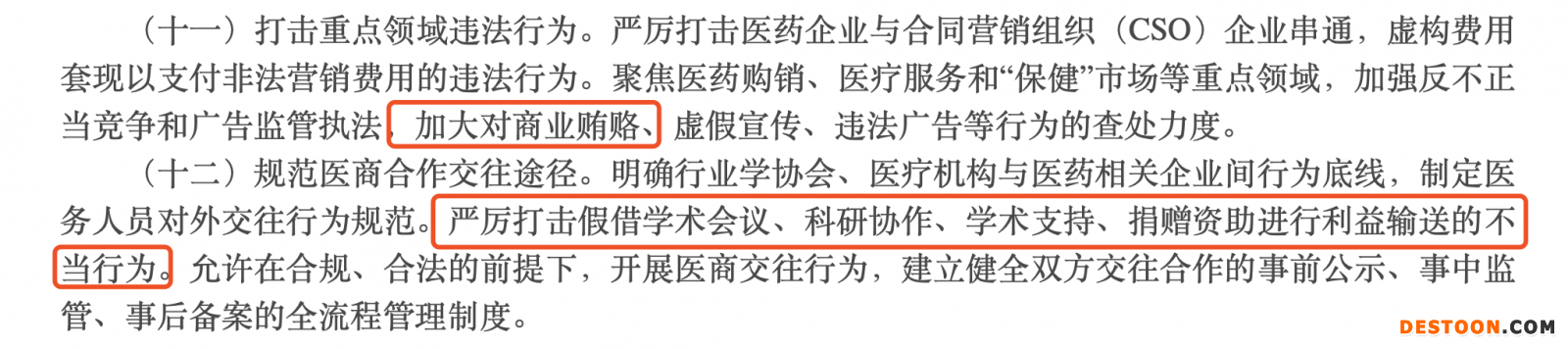 嚴(yán)厲打擊假借學(xué)術(shù)會議、科研協(xié)作、學(xué)術(shù)支持、捐贈資助進(jìn)行利益輸送的不當(dāng)行為。允許在合規(guī)、合法的前提下,開展醫(yī)商交往行為,建立健全雙方交往合作的事前公示、事中監(jiān)管、事后備案的全流程管理制度。