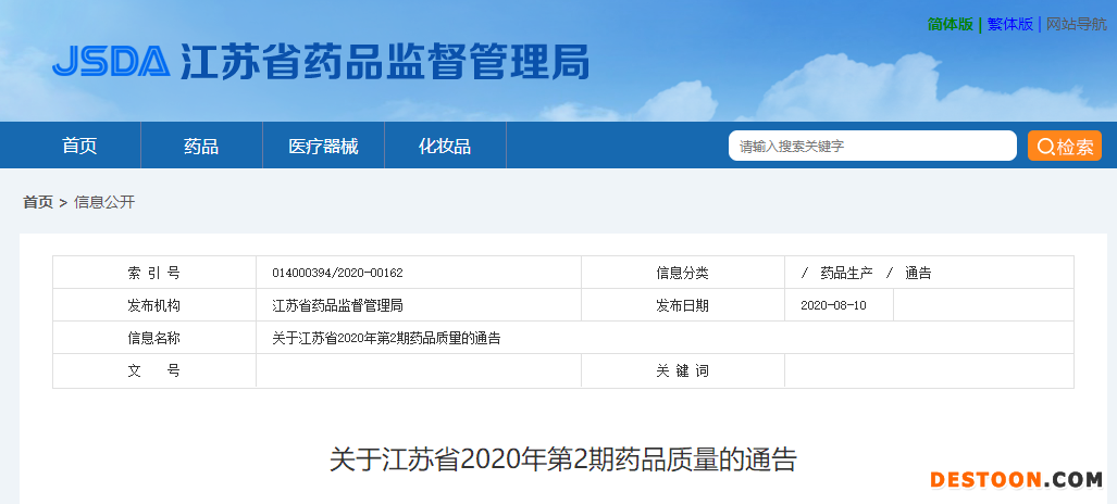 8月13日訊 8月10日,江蘇省藥監(jiān)局發(fā)布了“2020年第2期藥品質(zhì)量的通告”(以下簡(jiǎn)稱“通告”)。