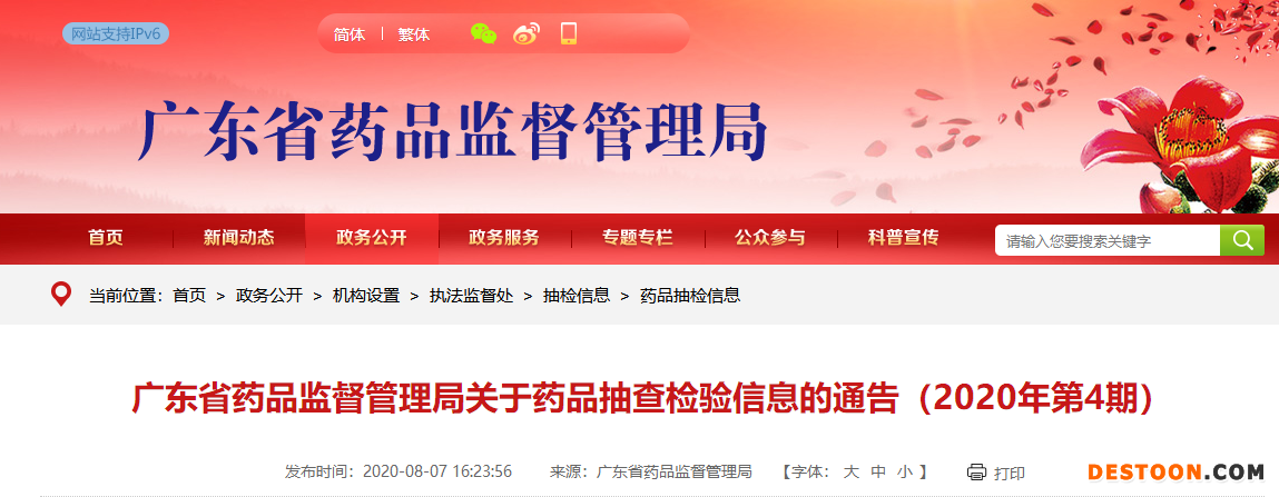 8月7日,廣東省藥監(jiān)局發(fā)布了“2020年第4期藥品抽查檢驗(yàn)信息的通告”(以下簡(jiǎn)稱“抽查通告”)。