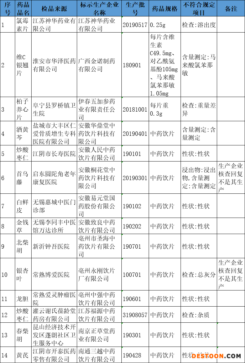 通告顯示,依據(jù)江蘇省藥品監(jiān)督管理局年度抽檢工作計(jì)劃,該局組織對(duì)藥品生產(chǎn)、經(jīng)營(yíng)、使用單位進(jìn)行了抽檢。在抽檢中發(fā)現(xiàn),有14批次藥品不符合規(guī)定。