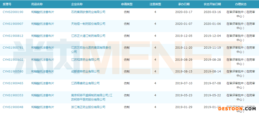 枸櫞酸托法替布片上市申請(qǐng)?jiān)趯徳u(píng)企業(yè)