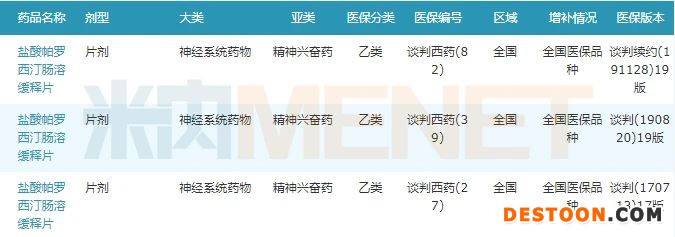 圖2:鹽酸帕羅西汀腸溶緩釋片的醫(yī)保情況