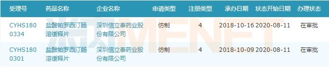 圖1:信立泰的鹽酸帕羅西汀腸溶緩釋片注冊情況