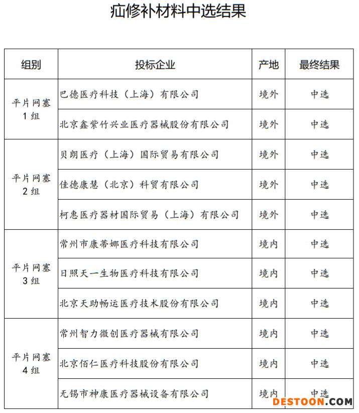 疝修補材料中選企業(yè)包括巴德醫(yī)療、貝朗醫(yī)療、柯惠醫(yī)療等械企。