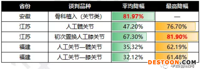 Ø 關(guān)節(jié)類:安徽平均降幅81.97%(最高降幅暫缺),江蘇膝關(guān)節(jié)最高降幅81.90%