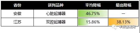 Ø 起搏器:安徽平均降幅46.75%(最高降幅暫缺),江蘇雙腔起搏器最高降幅38.13%