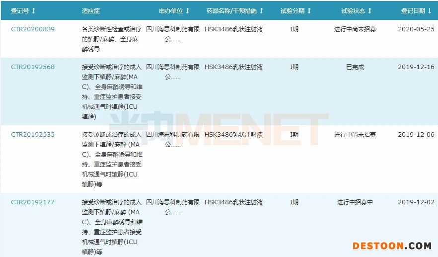 圖2:HSK3486乳狀注射液國(guó)內(nèi)臨床試驗(yàn)登記情況