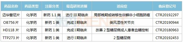 TTP273片為華東醫(yī)藥引進的口服GLP-1創(chuàng)新藥,2型糖尿病適應癥已開展I期臨床;HD118片為公司技術轉讓來的DPP-4抑制劑,改善2型糖尿病成人患者血糖控制適應癥已完成I期臨床;OB756片類風濕性關節(jié)炎適應癥已完成I期臨床,骨髓增殖性疾病適應癥已獲批臨床。