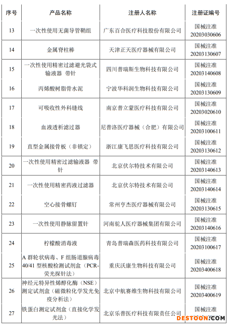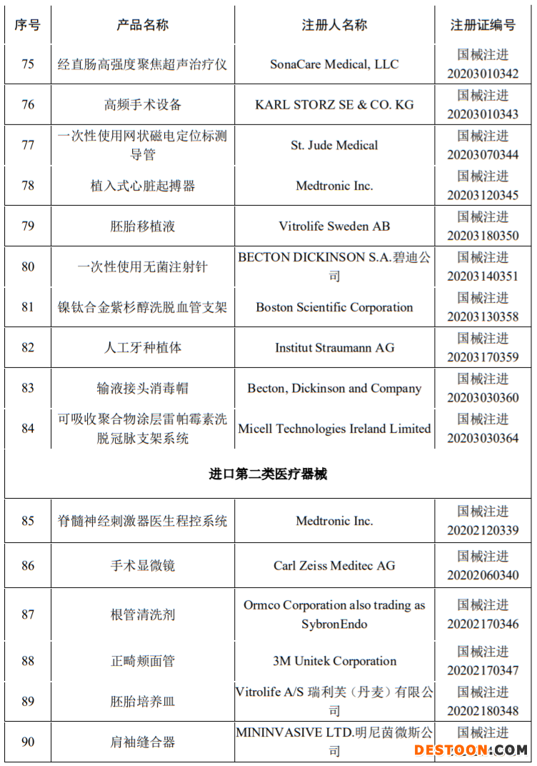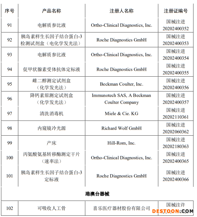 8月24日訊 8月21日,國(guó)家藥監(jiān)局發(fā)布《國(guó)家藥監(jiān)局關(guān)于批準(zhǔn)注冊(cè)102個(gè)醫(yī)療器械產(chǎn)品公告(2020年7月)(2020年第90號(hào))》。