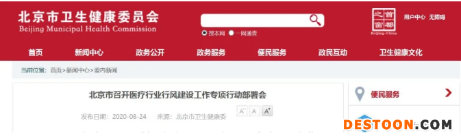 8月24日,北京市衛(wèi)健委官網(wǎng)發(fā)布“北京市召開醫(yī)療行業(yè)行風(fēng)建設(shè)工作專項行動部署會”消息,落實推進醫(yī)療行業(yè)作風(fēng)建設(shè)工作專項行動。