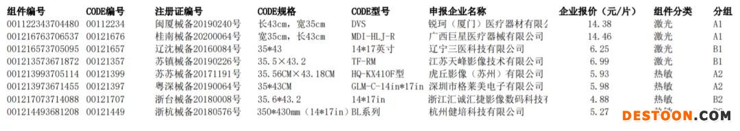 醫(yī)用膠片擬中選企業(yè)包括銳珂(廈門)醫(yī)療器材有限公司、廣西巨星醫(yī)療器械有限公司、遼寧三醫(yī)科技有限公司等,上述三家企業(yè)報(bào)價(jià)分別為14.38元、14.46元、6.25元。