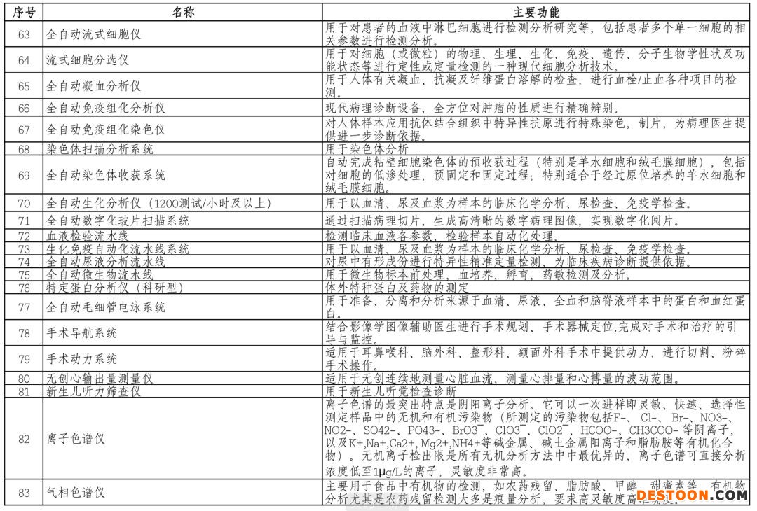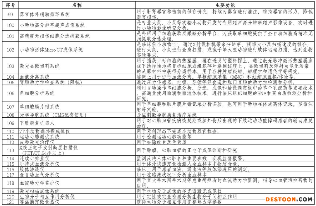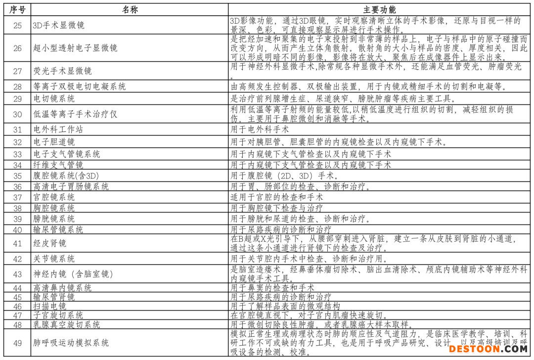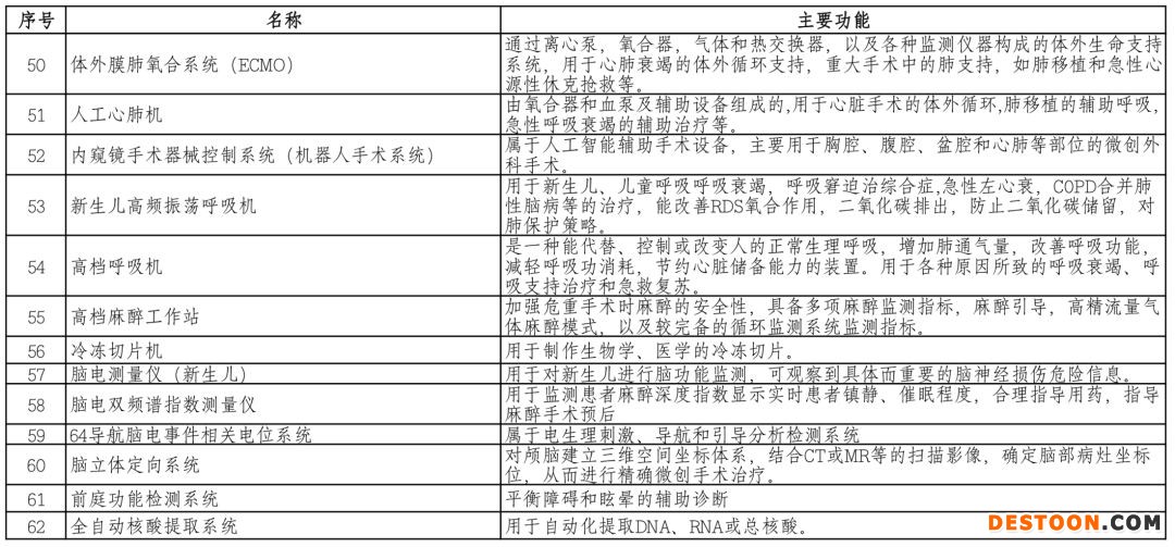 附:上表中醫(yī)療器械對應(yīng)的主要功能