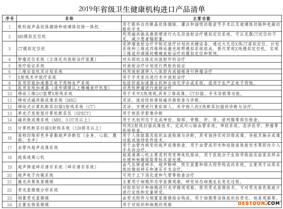 廣東省衛(wèi)健委曾發(fā)布《關(guān)于 2019 年省級衛(wèi)生健康機(jī)構(gòu)進(jìn)口產(chǎn)品清單的公示》,納入2019年廣東省省級衛(wèi)生健康機(jī)構(gòu)進(jìn)口產(chǎn)品目錄清單的醫(yī)療設(shè)備,共計(jì)132種,試劑73種。