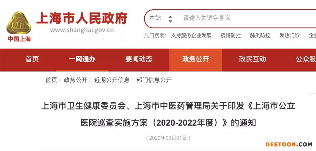 9月4日訊 9月1日,上海市人民政府發(fā)布《上海市公立醫(yī)院巡查實(shí)施方案(2020-2022年度)》。
