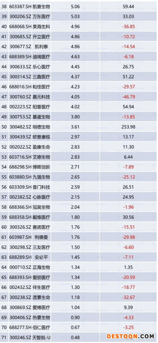 在營收增速上,圣湘生物最快,高達1159.4%;英科醫(yī)療增速超300%;健帆生物等7家械企增速超100%。但有25家企業(yè)出現(xiàn)下滑。