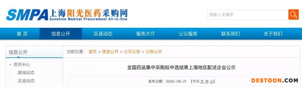 此外,上海陽光醫(yī)藥采購網在8月21日發(fā)布了《全國藥品集中采購擬中選結果上海地區(qū)配送企業(yè)公示》。