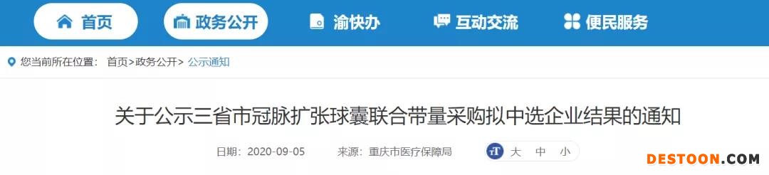 9月5日,重慶市醫(yī)保局發(fā)布《關(guān)于公示三省市冠脈擴(kuò)張球囊聯(lián)合帶量采購(gòu)擬中選企業(yè)結(jié)果的通知》。