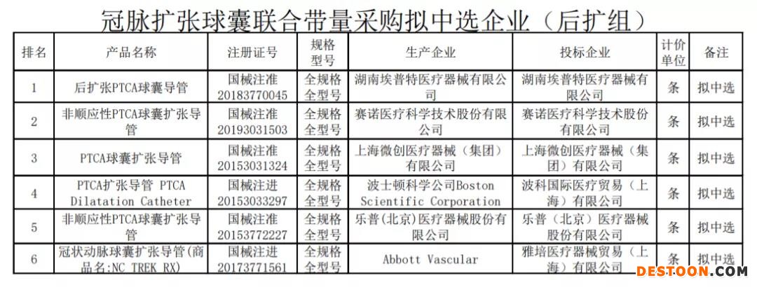 后擴(kuò)組冠脈擴(kuò)張球囊擬中選企業(yè)包括湖南埃普特、賽諾醫(yī)療、上海微創(chuàng)、波科、樂(lè)普、雅培。