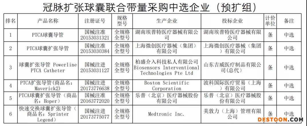預(yù)擴(kuò)組冠脈擴(kuò)張球囊中選企業(yè)包括湖南埃普特、上海微創(chuàng)、吉威醫(yī)療、波科、樂(lè)普、美敦力。