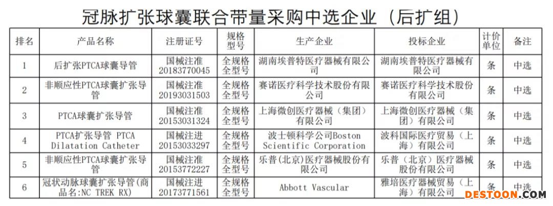 后擴(kuò)組冠脈擴(kuò)張球囊中選企業(yè)包括湖南埃普特、賽諾醫(yī)療、上海微創(chuàng)、波科、樂(lè)普、雅培。