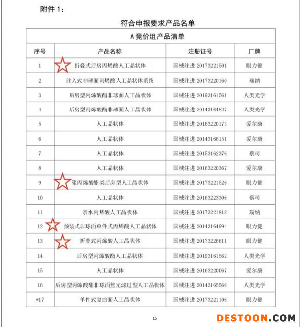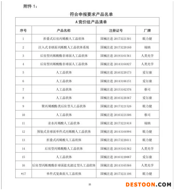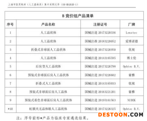 對此,有企業(yè)人士向《科創(chuàng)板日報》記者進一步解釋稱,競價組A中入圍產(chǎn)品的篩選大致遵循了兩個標準,其一是入圍的廠牌上海市場占比應較大(所有人工晶體產(chǎn)品在上海市場的銷量占比在10%以上);其次,再從以上入圍廠牌的產(chǎn)品中篩選出相對主流的產(chǎn)品。