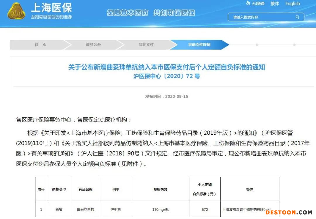9月18日訊 近日,上海醫(yī)保局發(fā)文,將復宏漢霖曲妥珠單抗注射液納入本市醫(yī)保,參保人員個人定額自付標準為670元/瓶(150mg)。