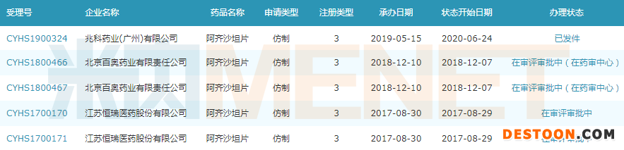 此前,國內(nèi)已有3家企業(yè)提交阿齊沙坦片上市申請,分別為兆科藥業(yè)、百奧藥業(yè)、恒瑞醫(yī)藥。兆科藥業(yè)阿齊沙坦片的上市申請審評結(jié)果為不批準(zhǔn),與首仿擦肩而過。恒瑞醫(yī)藥、百奧藥業(yè)的阿齊沙坦片上市申請在審評中,恒瑞醫(yī)藥為該品種首家報產(chǎn)企業(yè)。誰將拿下阿齊沙坦片首仿,值得期待!