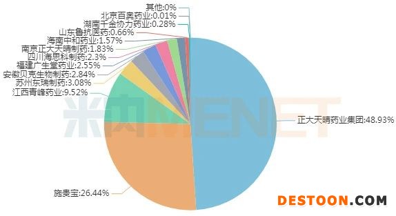 米內(nèi)網(wǎng)數(shù)據(jù)顯示,2019年在中國(guó)城市公立醫(yī)院、縣級(jí)公立醫(yī)院、城市社區(qū)中心及鄉(xiāng)鎮(zhèn)衛(wèi)生院(簡(jiǎn)稱中國(guó)公立醫(yī)療機(jī)構(gòu))終端恩替卡韋銷售額超過(guò)70億元,劑型有膠囊劑和片劑兩種,在TOP20品牌中,正大天晴藥業(yè)集團(tuán)占比最大,達(dá)48.93%;其次是施貴寶占26.44%;江西青峰藥業(yè)位居第三,占9.52%。