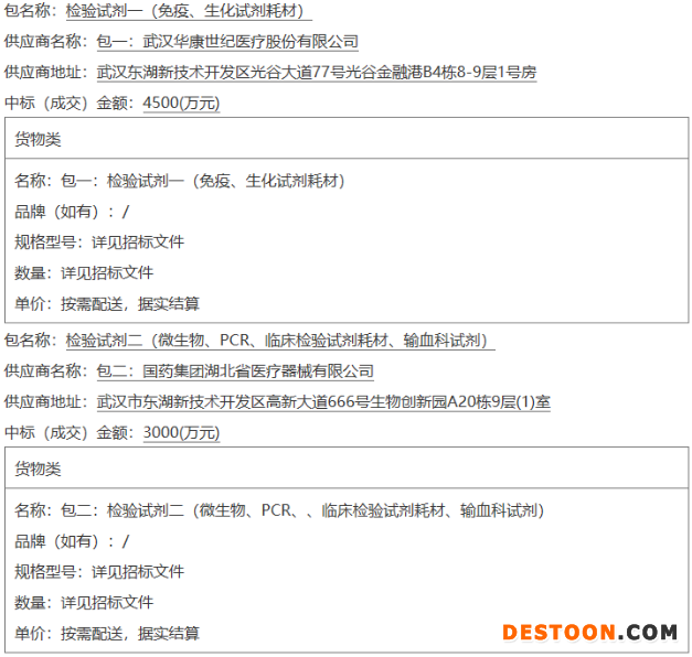 最終,武漢華康世紀(jì)醫(yī)療股份有限公司和國藥集團(tuán)湖北省醫(yī)療器械有限公司兩家公司中標(biāo)。